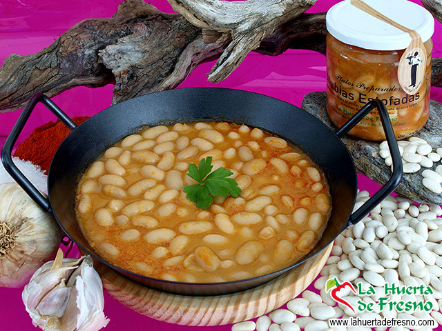 Ingredients: white kidney beans, onions, garlic, virgin olive oil, paprika, salt, vinegar and bay leaf.