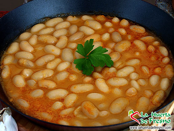 Description: stewed white beans cooked according to the traditional recipe from La Bañeza (León). Protected Origin indication. (PGI).