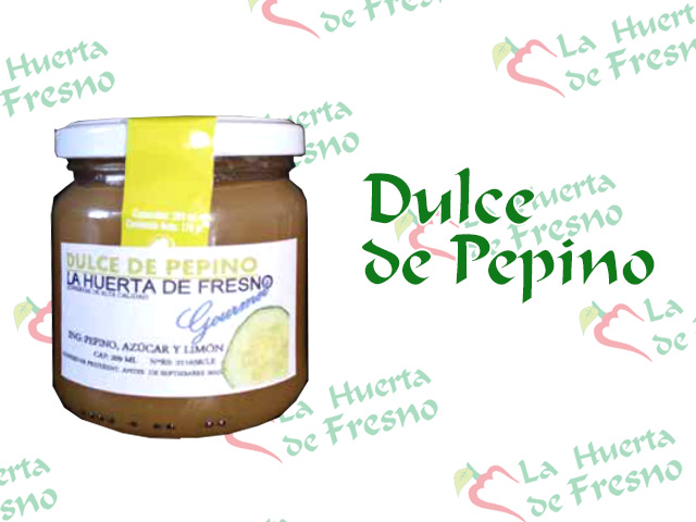 Ingredients: cucumbers, sugar and lemon. Preparation: we use the cucumbers from Huerta de Fresno de la Vega, they are sieved, sugar is added and it is all cooked in a pan. Packed with lemon as a natural preservative. 105 ºC autoclave
