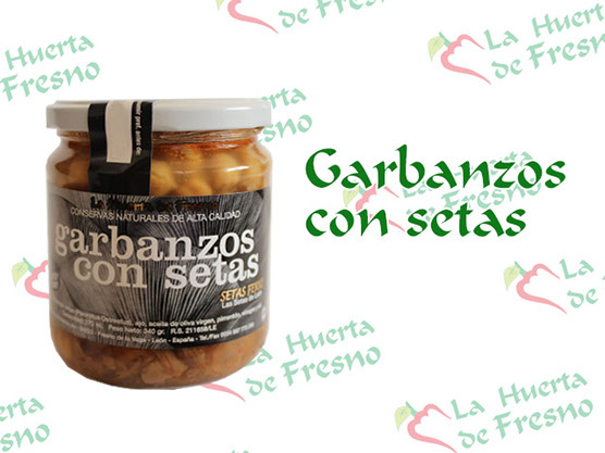 Ingredients: chickpeas, mushrooms (Pleorotus Ostreatus), onions, garlic, virgin olive oil, paprika, vinegar, salt and bay leaf.